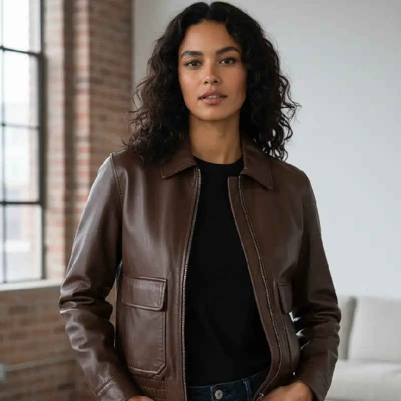 Brown bomber leather jacket hand dyed by dubey